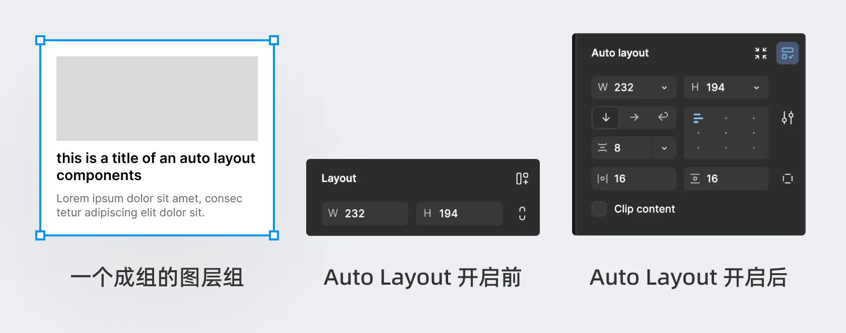 Figma中最核心的功能之一 —— 自动布局 Autolayout,是**定义多个元素之间布局关系的功能**。可以通过特定的图层编组、层级、设置来实现复杂的布局功能,并可以实现内容的快速调整和适应,大幅度提升设计的效率。