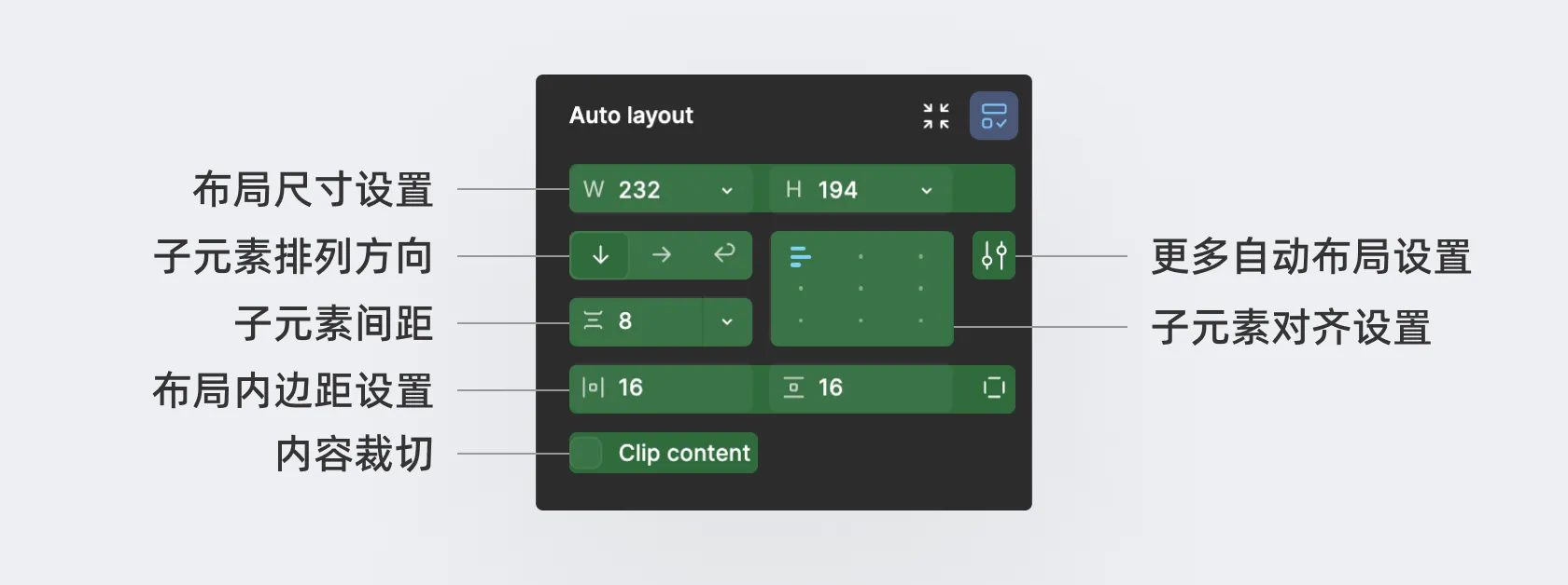 自动布局创建后包含两部分内容,理解它们是掌握自动布局使用的关键: