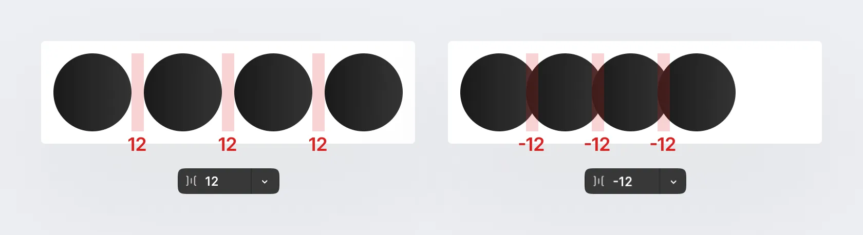 子元素排列除了方向外,还需要控制子元素之间的间距。间距的设置可以为正数也可以为负数。