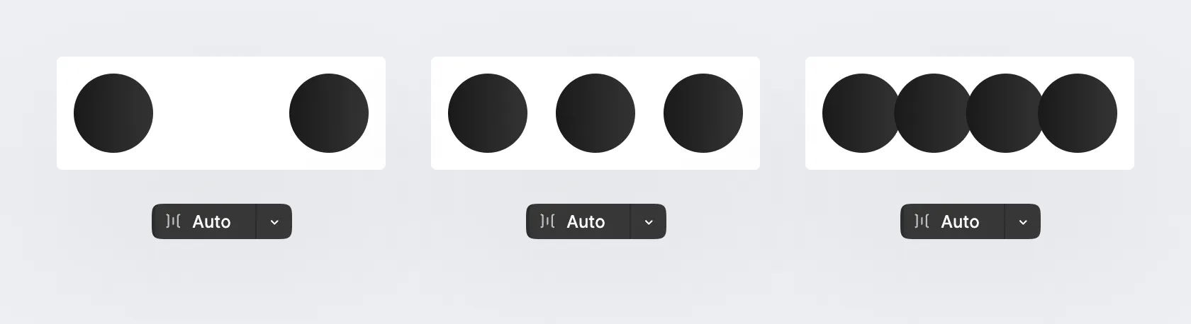 间距除了设置具体参数外,也可以在下拉选项内选择 Auto,那么子元素会忽略间距实现自动排列,如果只有两个元素则排列在方向的两极,每增加一个元素则形成均分的布局。