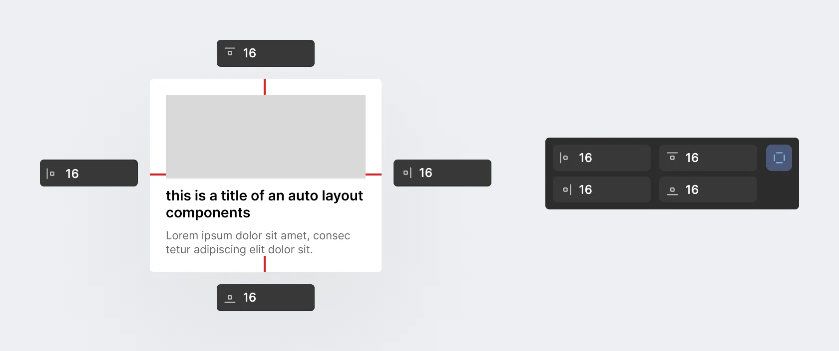 用于设置自动布局内间距的大小,即子元素距离布局四周边缘的数值。可以快速设置上下、左右数值,也可以每个方向独立设置。