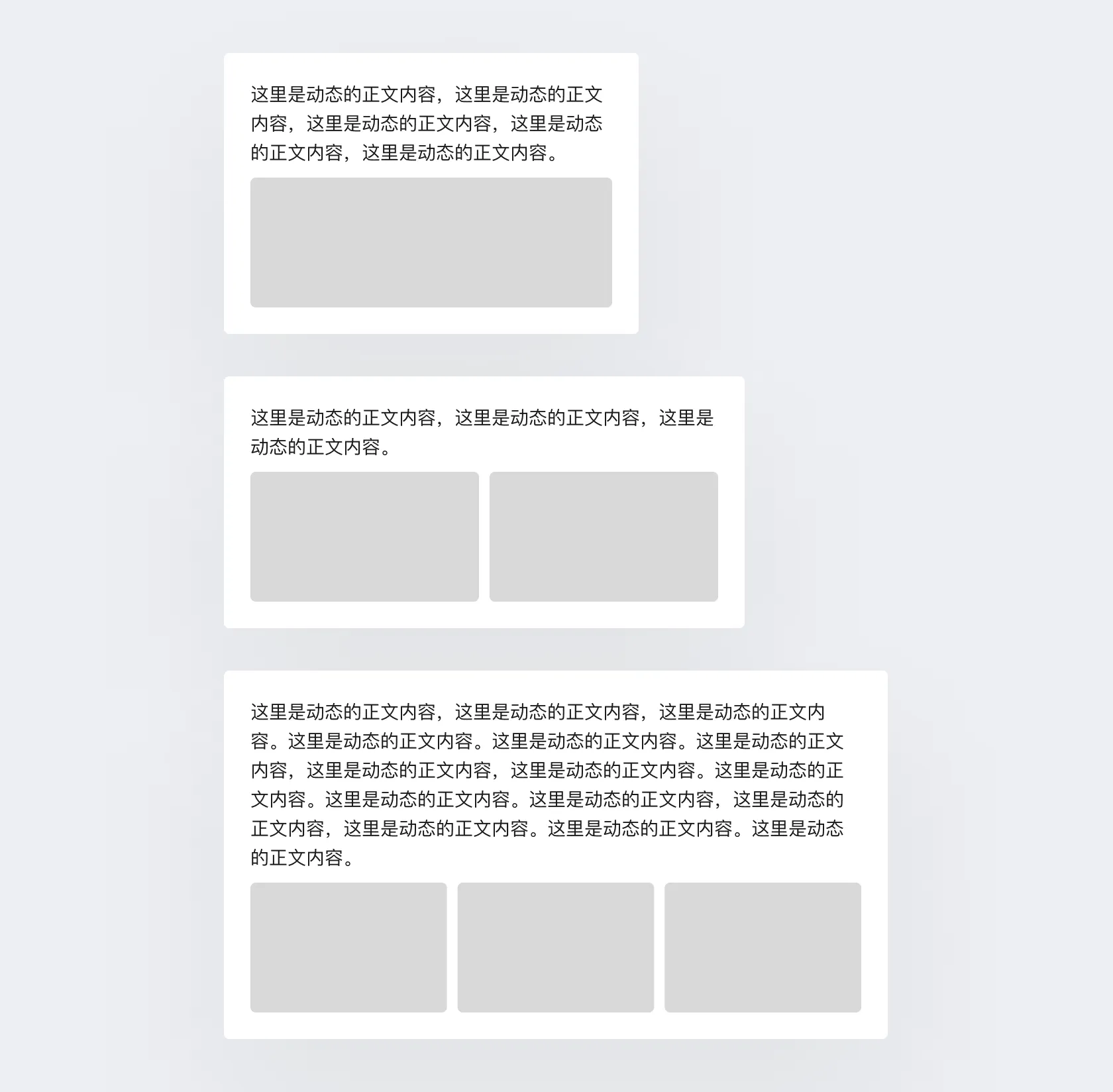 底部栏操作栏和用户栏逻辑一致,那么最终我们实现的动态卡片,就可以根据修改宽度的时候下级内容自动适应,修改动态内容和高度时,整个卡片的高度也会自动调节。