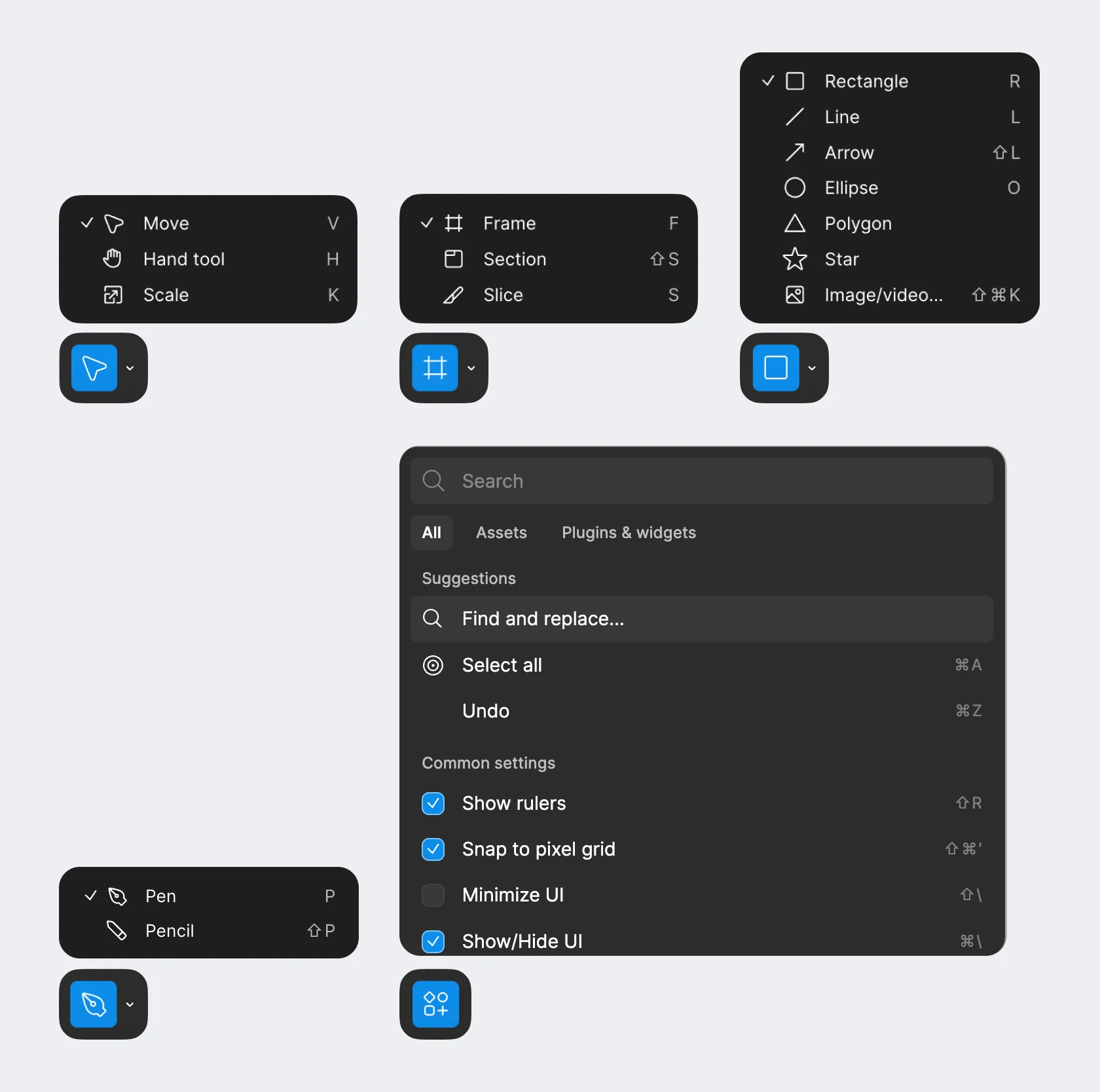 - Frame(A / F):画框工具,选中后用于创建画框,即容易视觉内容的界面区域。