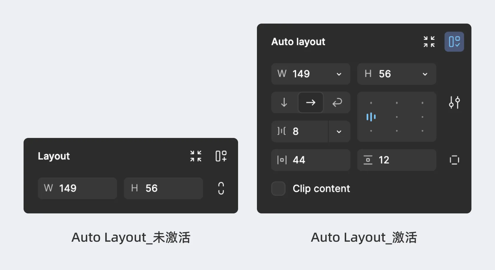 布局面板是用于控制自动布局 Autolayout设置的面板,需要激活后才会显示对应的属性设置。