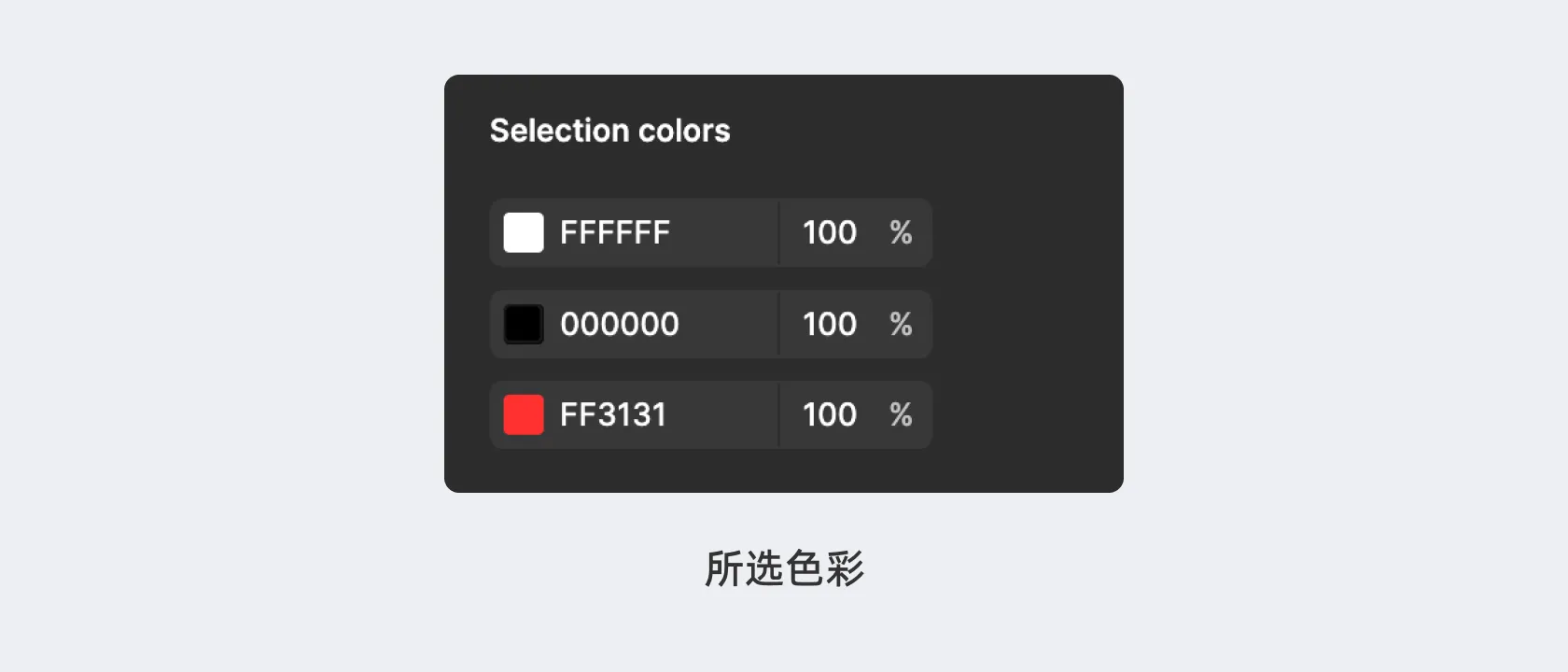 选中多个元素或编组时,如果包含多个填充色,那么就会额外显示一个展示选择包含色彩的面板。除了获知使用的填充色外,还可以在这里快速完成对颜色的调整或替换。