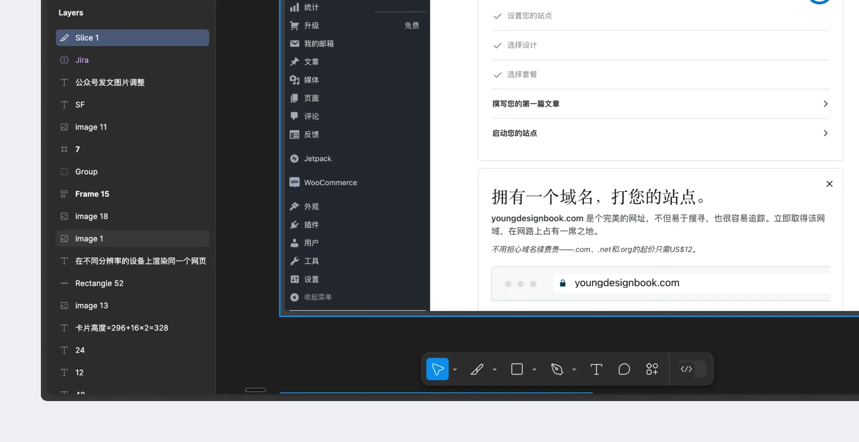 - Slice(S):切片工具,用于创建切图区域并进行切图导出
