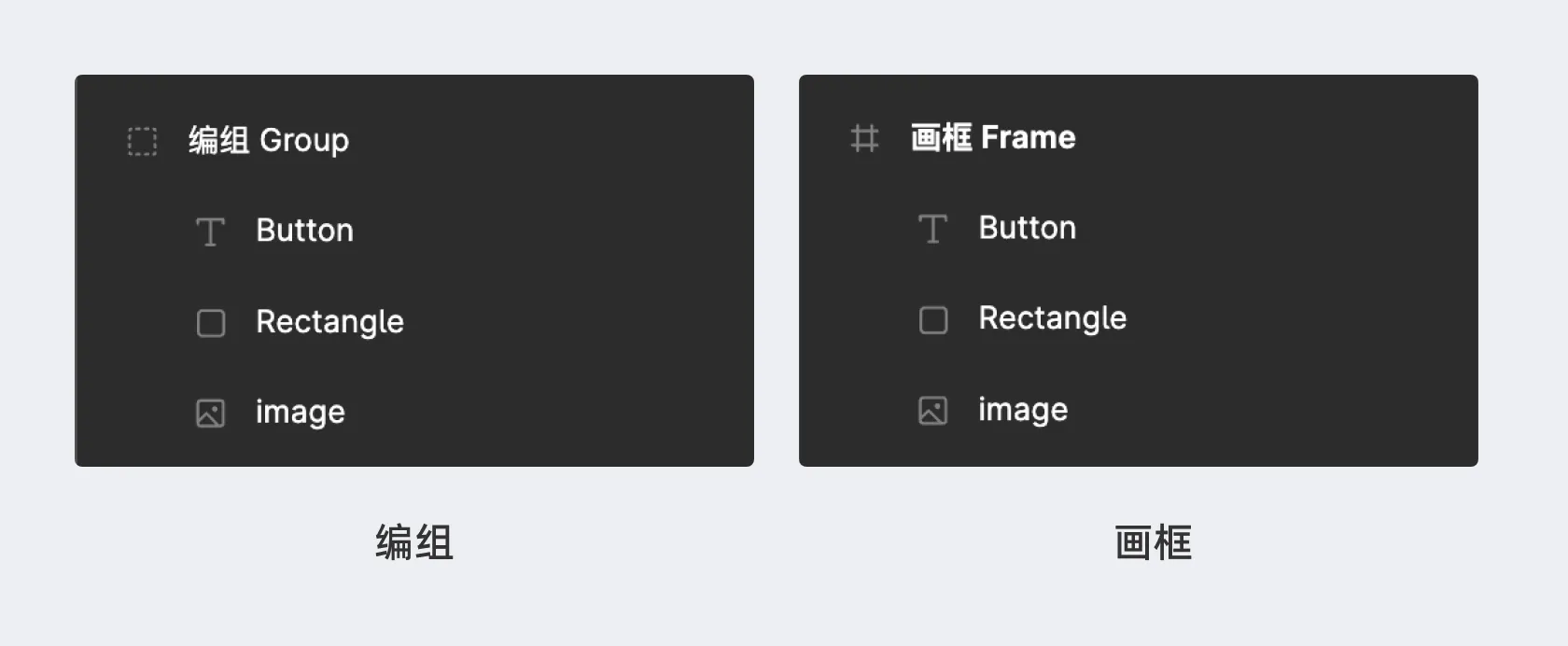 而画框 Frame 则是一个特殊的组(后面统一叫 Frame 更顺口),虽然也具备一般编组的功能,但它被赋予了更重要的任务和功能。它和一般编组的差异可以总结为下面这些: