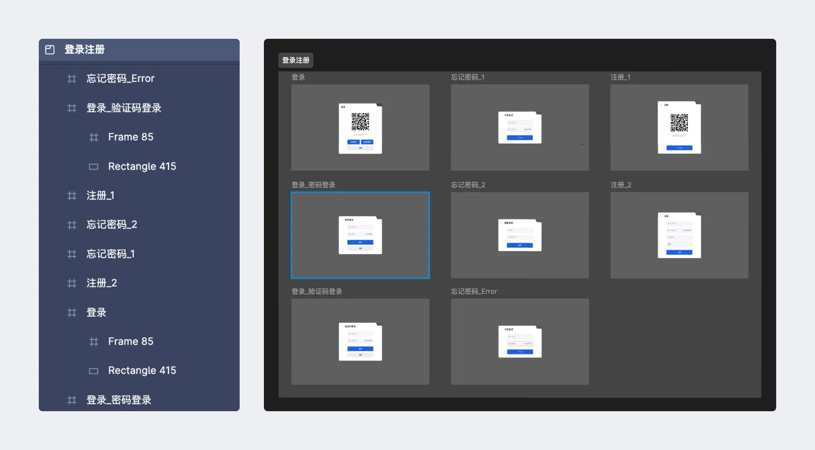 除了 Frame 外,Figma 后续还提供了分区 Section 编组,这是因为越来越多 Figma 用户会用它来创建产品需求文档、交互流程说明,这就需要导出一整个区域的视觉内容。