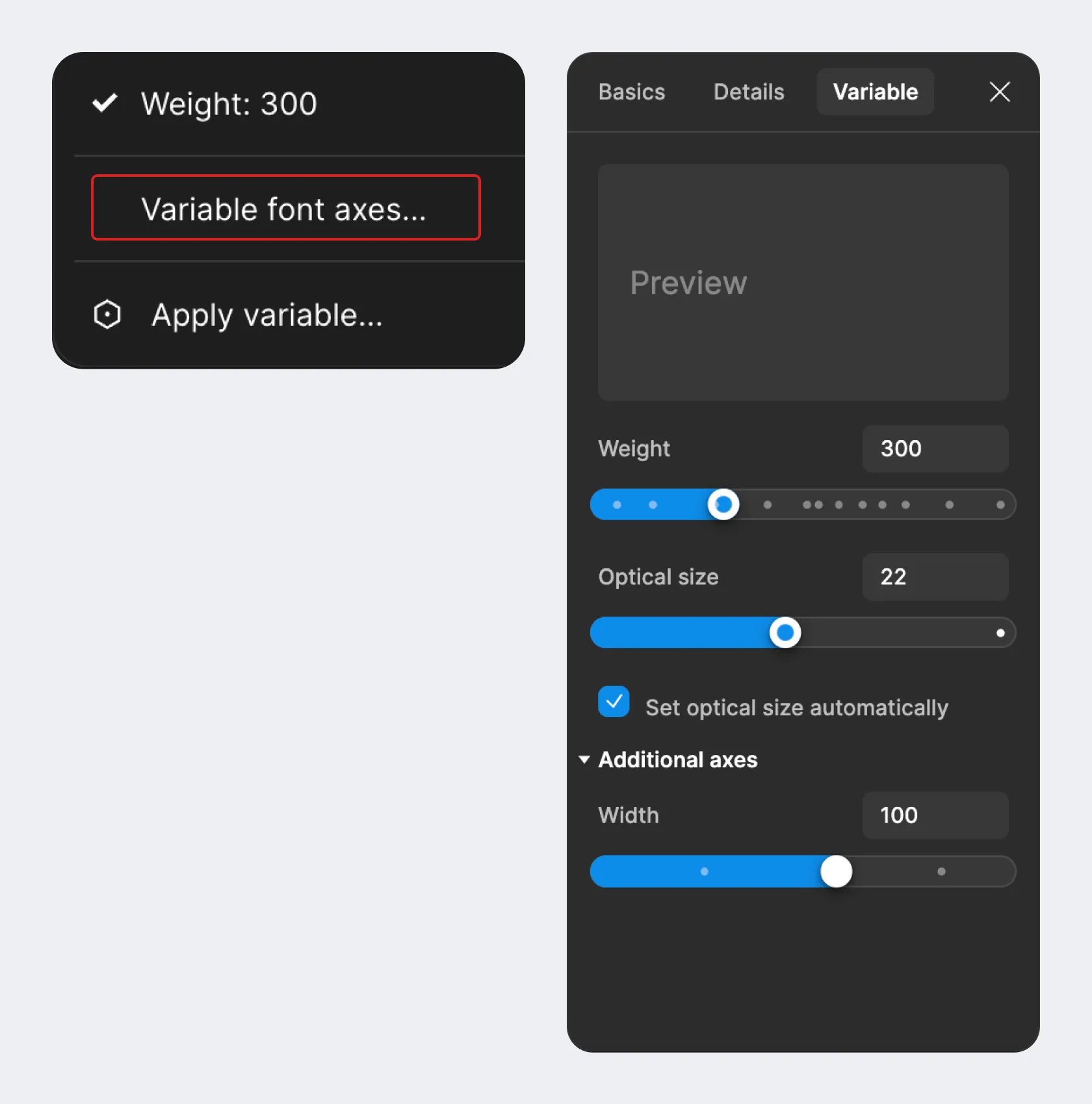 而Variable Fonts的逻辑则完全不同,这类字体仅需安装一个字体文件,可以通过数值的调节直接变更它的字重属性。