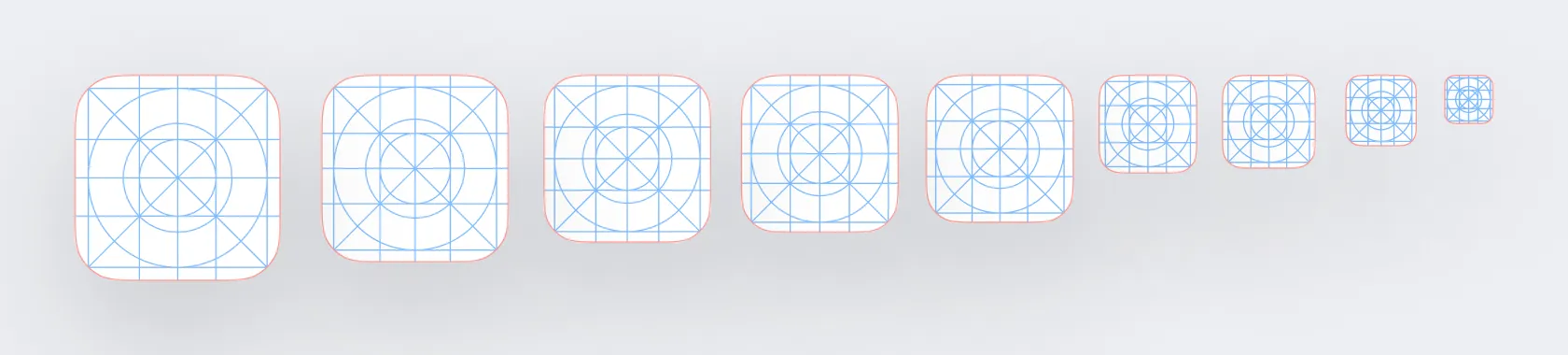 产品图标的设计使用 1024*1024 的正方形大画布进行设计,后续导出也直接导出1x方形图即可,不用刻意裁切四周。
