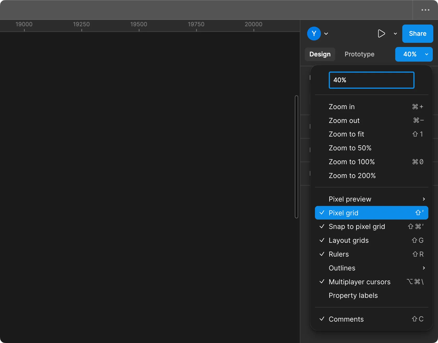 设计过程中,要先开启像素网格 Pixel grid功能,在放大画布时可以看见参考网格,便于矢量图形和锚点的编辑。